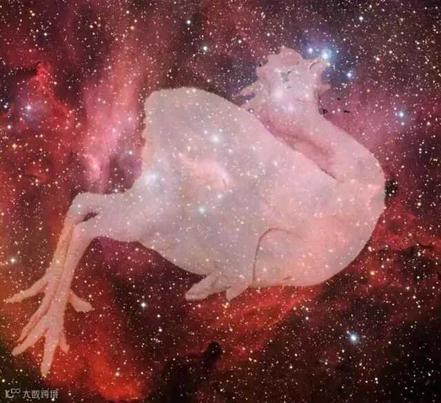 你造吗?在我们的头顶上,有一个半人马座里的λ星云,距离地球6500光年,它是受到新生恒星释放的强烈紫外辐射激发而发光的一大团氢云。据说在有些人眼中,这个星云里最明亮的部分看起来好像一只小鸡,所以它又被称为“小鸡快跑”星云。