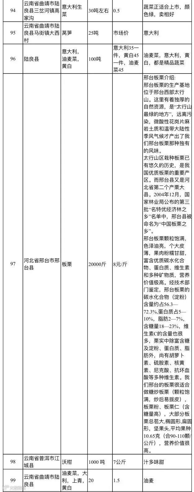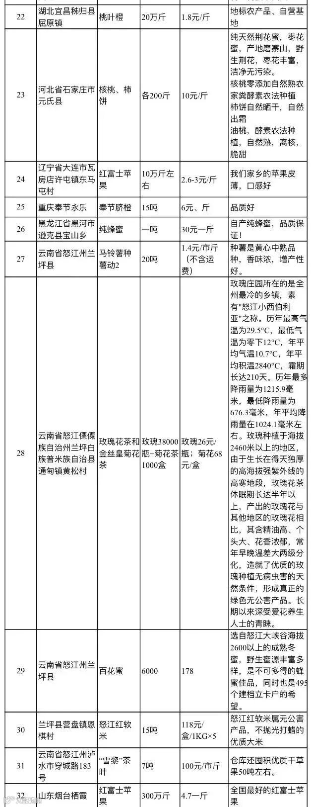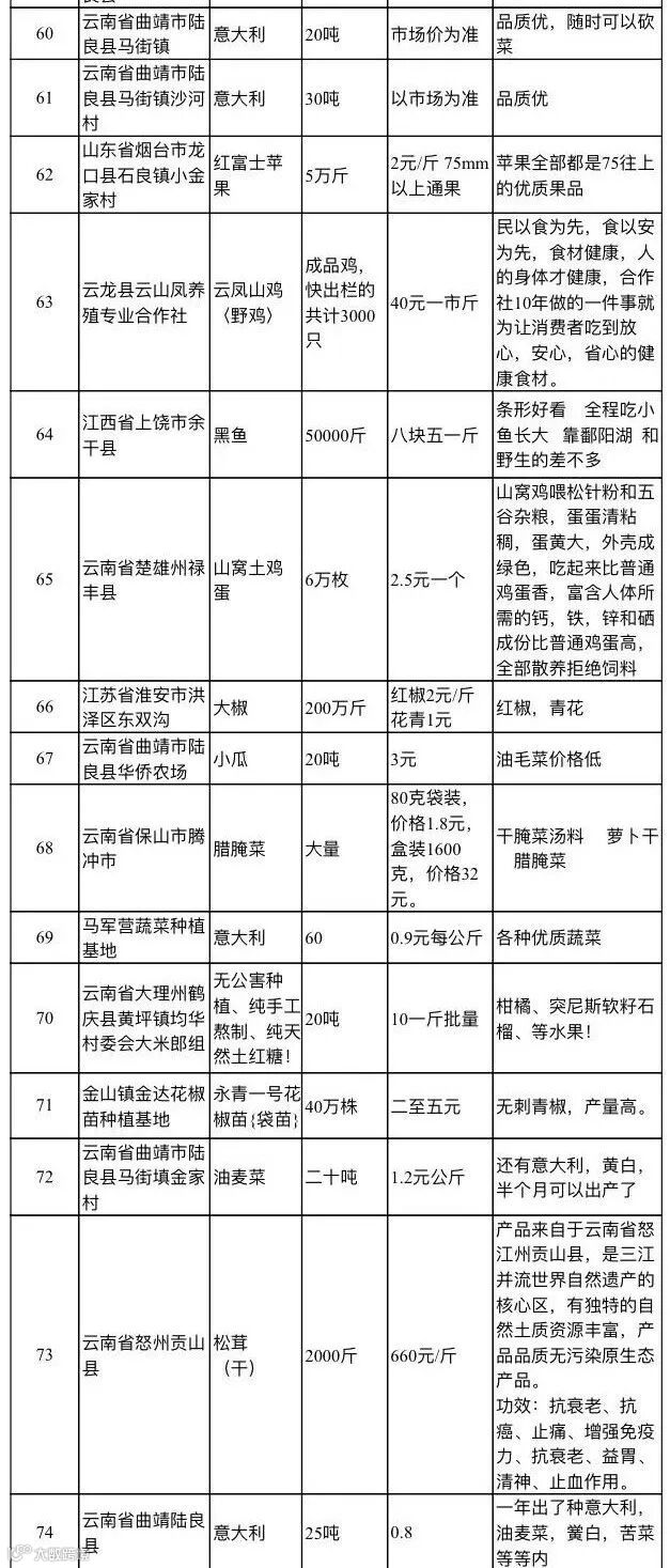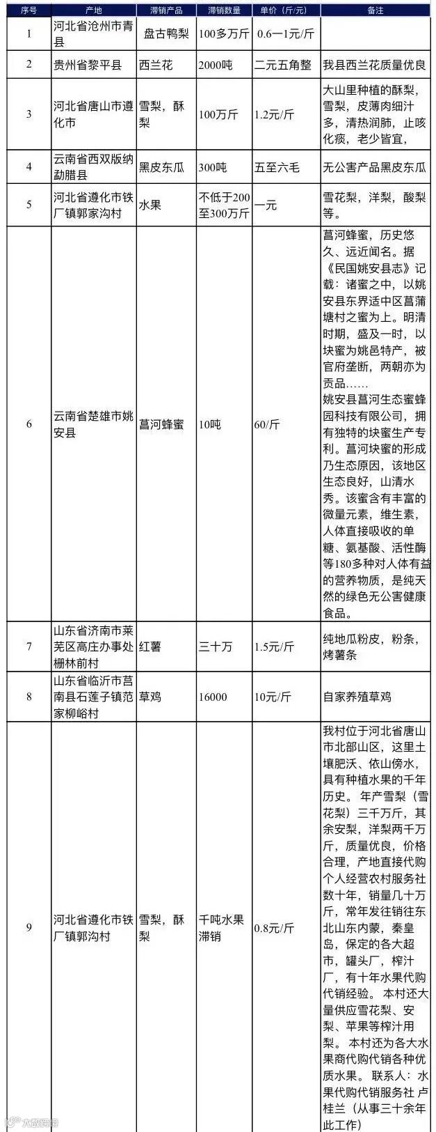 肺炎疫情发生后,全国不少地区的水果、蔬菜、禽蛋等农产品都出现了不同程度的滞销。以下为全国农产品滞销卖难信息(第三期):
