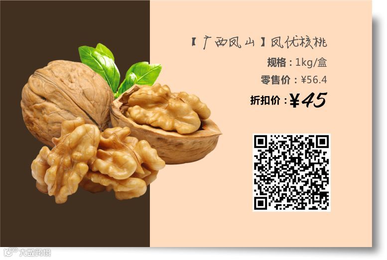 核桃的营养价值相信我都不需要多做介绍了,它与扁桃、腰果、榛子并称为世界著名的“四大干果”。核桃营养丰富,有“万岁子”“长寿果”“养生之宝”的美誉。今天给大家推荐的这个“凤优核桃”,是核桃中的战斗核桃,壳薄如纸,果实饱满,入口酥脆,回味甘甜,它生长于大山之中,零污染,零加工,每一颗都是经人工挑选,散发着自然的香气。这样的核桃才是好核桃,来尝一尝吧!