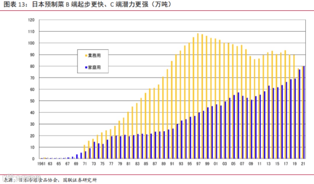 成长期发生在1968年至1991年,日本经济快速扩张,城镇化率普及后,女性们开始外出工作,在外就餐率的提升,预制菜得以快速渗透。