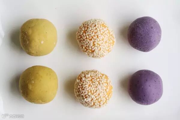 小编的蛋黄薯丸是实心儿的,蛋黄薯口感软糯香甜,在外面裹一层白芝麻,颜值很高吧~