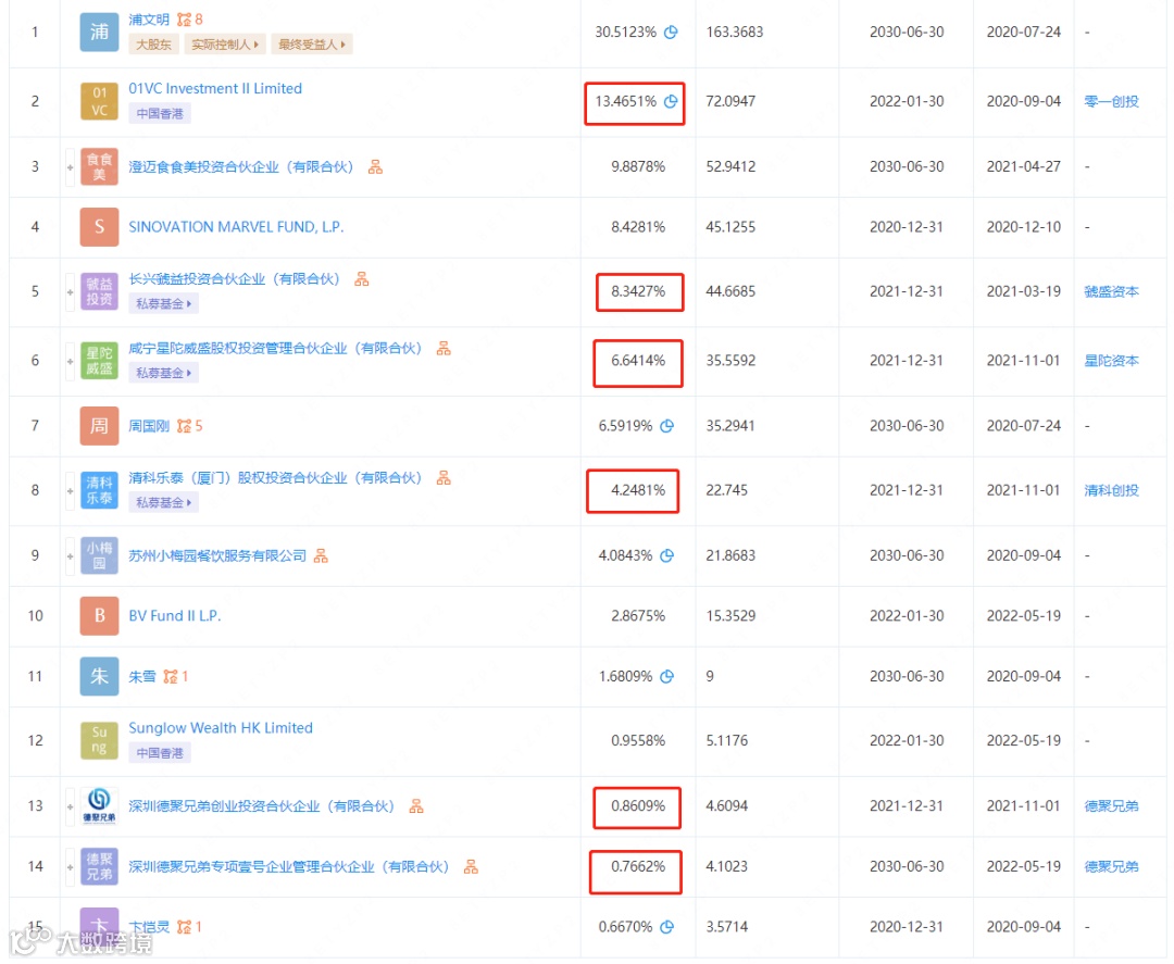 值得一提的是,自2020年起至今年5月底,珍味小梅园已完成了六轮融资。参与的机构不乏创新工场、虢盛资本、星陀资本、清科资本等知名机构,可谓资本界的“宠儿”。