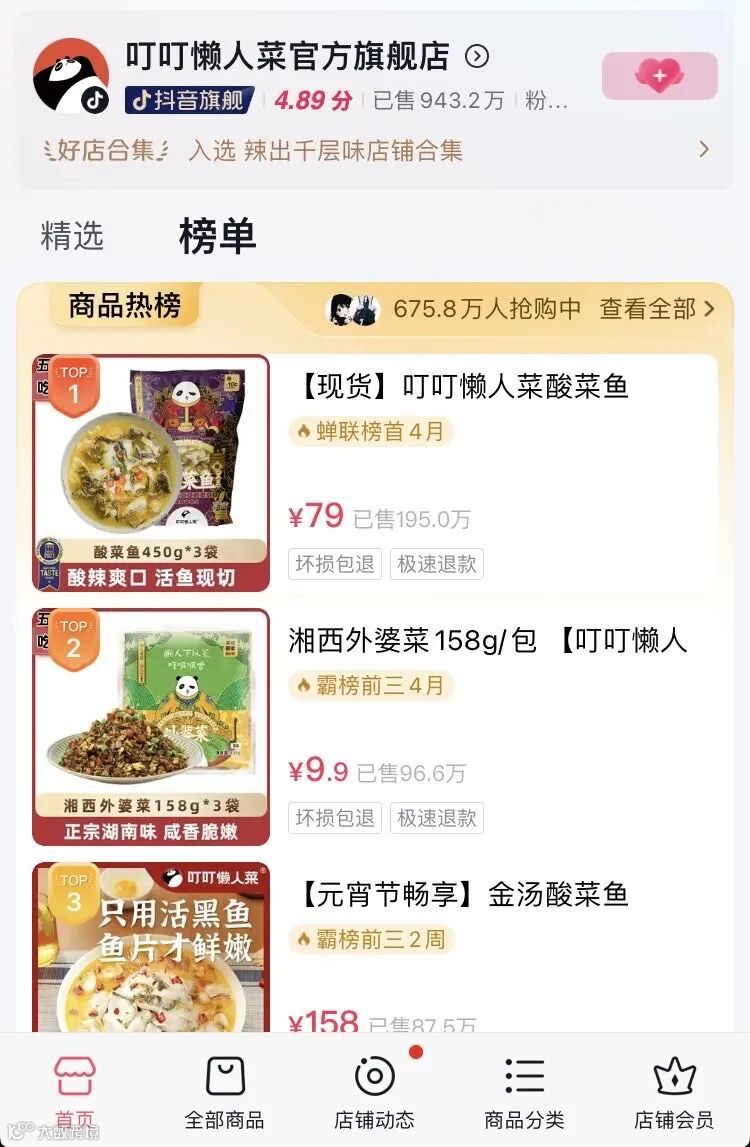 叮叮懒人菜也是行业的新贵。其在抖音坐拥262万粉丝,单月销售额超2亿元,全年业绩破8亿。2022年以来,品牌动作不断,多次成为抖音电商预制菜品牌“霸屏者”。其创始人林郑焕曾在接受其它媒体采访时表示,叮叮懒人菜已经在一二线市场站稳脚跟,复购率做到了70%。在酸菜鱼产品上没有任何一家能够匹敌。