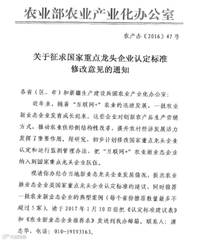 新年伊始,从深圳市经济贸易和信息化委员会传来喜讯,根据《深圳市重点农业龙头企业申报认定与监测办法》有关规定,深圳市经贸信息委组织展开了2017年市重点农业龙头企评审和考核,并征求深圳市发展改革委、财政委、市场监管委、金融办和证监局等单位意见,按规定进行公示后报深圳市政府确认同意,评选出100家深圳市重点农业龙头企业,点筹网与光明集团、深粮集团等一批具有社会影响力的超大型企业荣获“深圳市重点农业龙头企业”称号