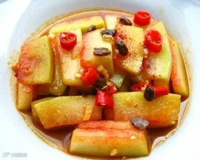 主料:西瓜皮、芝麻油、盐、蒜米、香醋、白糖、老干妈豆豉酱1勺、泡椒2粒