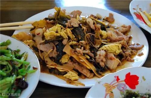 如果每个省份都选出一道代表性的小炒肉的话,山西是过油肉,山东是葱爆肉,江西是藜蒿炒腊肉,湖北是红菜苔炒腊肉,贵州是折耳根腊肉,那么云南的毫无疑问就是酸腌菜炒肉了,味道十分好。