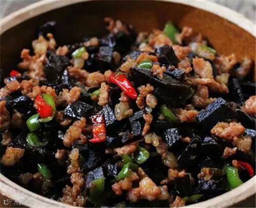 相对应的,还有黑三剁,用的黑大头,加上青椒和猪肉末,也是三样,分别剁碎,炒熟而成。