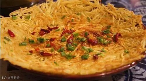 这菜看着简单,就是把洋芋丝在刷了一层油的铁锅里烙熟的,但却往往是最后上桌的,因为需要耐心慢慢烙,转着锅烙,所以不属于快手菜。