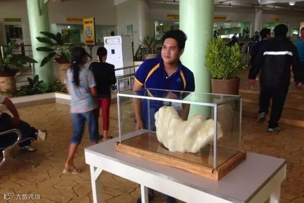 菲律宾一渔民十多年前在巴拉望岛的一次捕捞活动中寻获一枚重达34公斤、价值至少1亿美元的珍珠,然而,该渔民并没有意识到该珍珠的价值,而是将其作为了一个象征好运和美好的象征符放在了自己居住的木屋中。日前,因为木屋被年初的一场大火烧毁,该渔民清理财产搬家,并将珍珠交给了菲律宾旅游局的官员,该官员看到后表示很震惊,并表示,会将其作为具有纪念意义的物品存放,以吸引大量游客的参观。