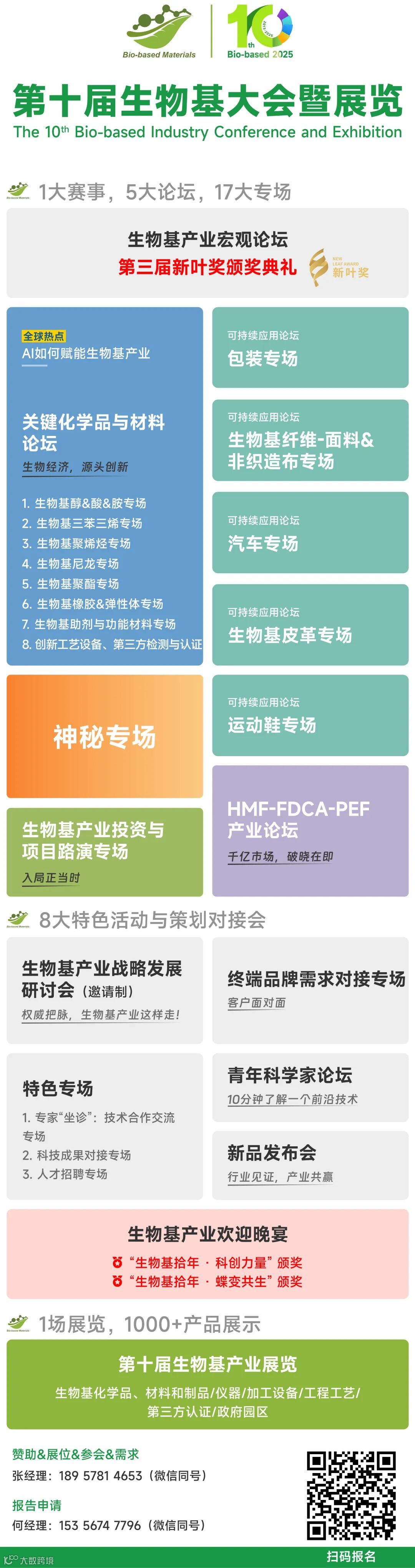 生物基行业极具公信力与权威的评选——第三届新叶奖,目前近 50 项竞选新品和 40+家企业申报竞选,已报名企业包括万华化学、金发科技、元利化学、苏尔寿、宁波环洋、亚科股份、东部湾等。
