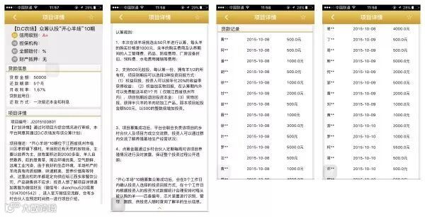其他的项目,比如开心羊场、大雁、高山生态土鸡是采用权益+实物的回报方式。深圳白领公寓以及恩施创业孵化器项目,投资人则是按月分红。年化收益率均是20%以上。