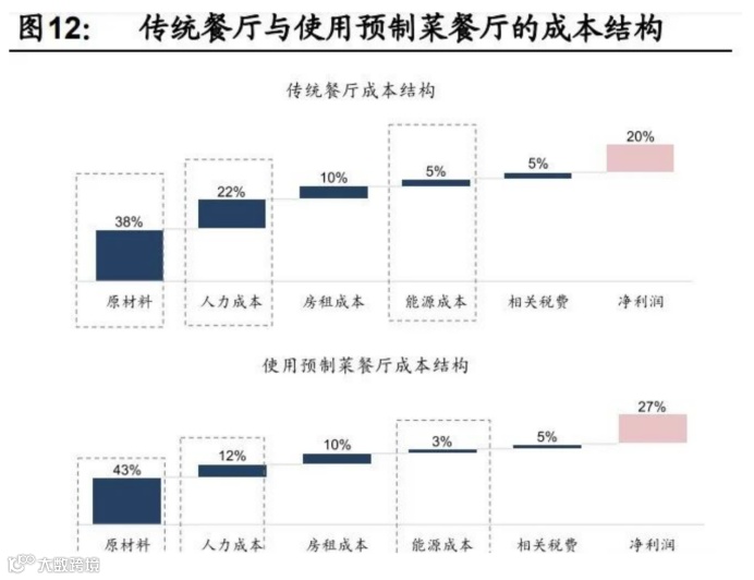 预制菜能够帮助餐饮业降本增效,提升盈利能力。目前,餐饮连锁化率提升,连锁餐饮对于房租、人力成本、保持口味一致性以及供应链稳定有较强诉求。