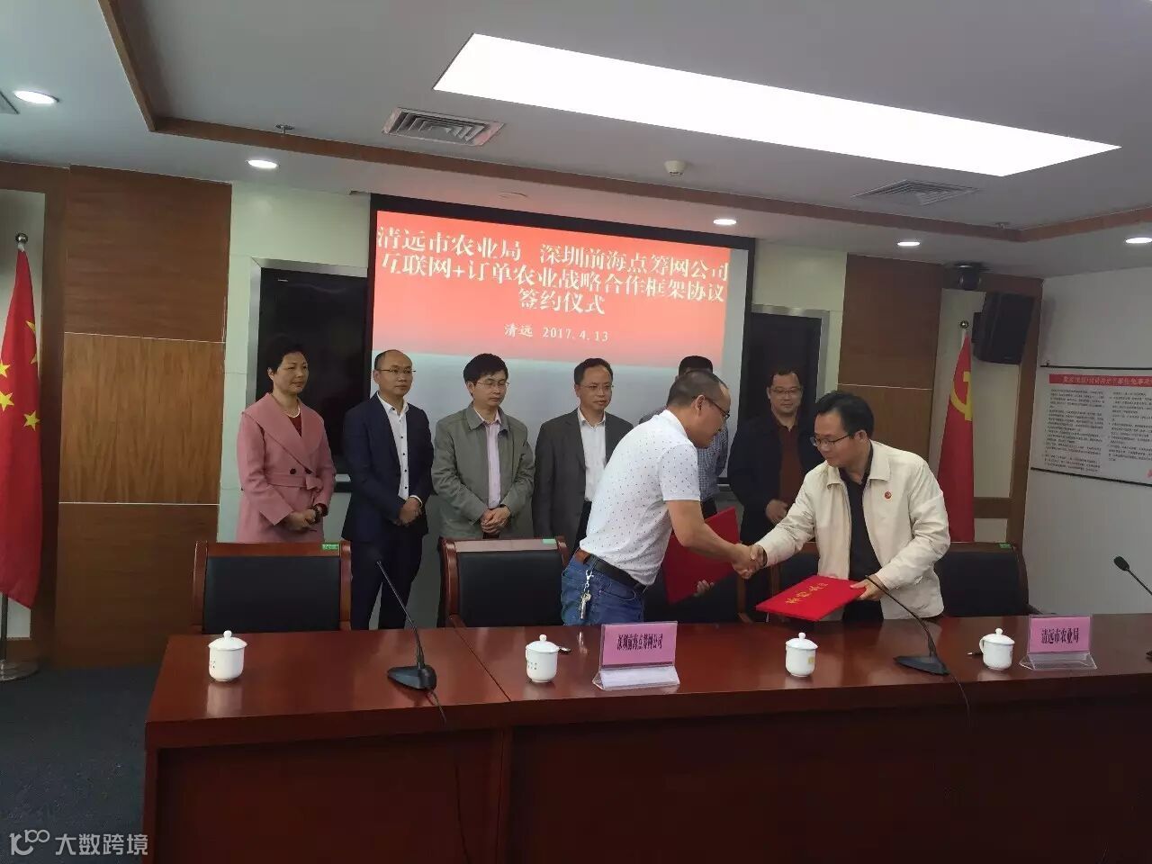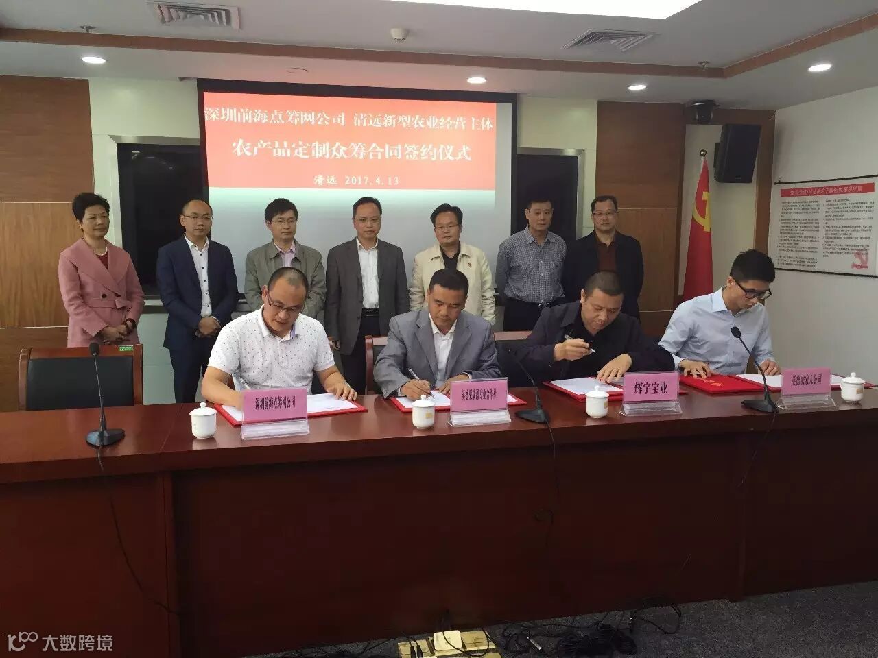 2017年4月13日下午,点筹网与清远市农业局“互联网+信用三农+订制农业”签约仪式暨战略合作落地。点筹网与清远八家农业企业“农产品订制众筹”签约仪式在清远市农业局八楼会议室举行。