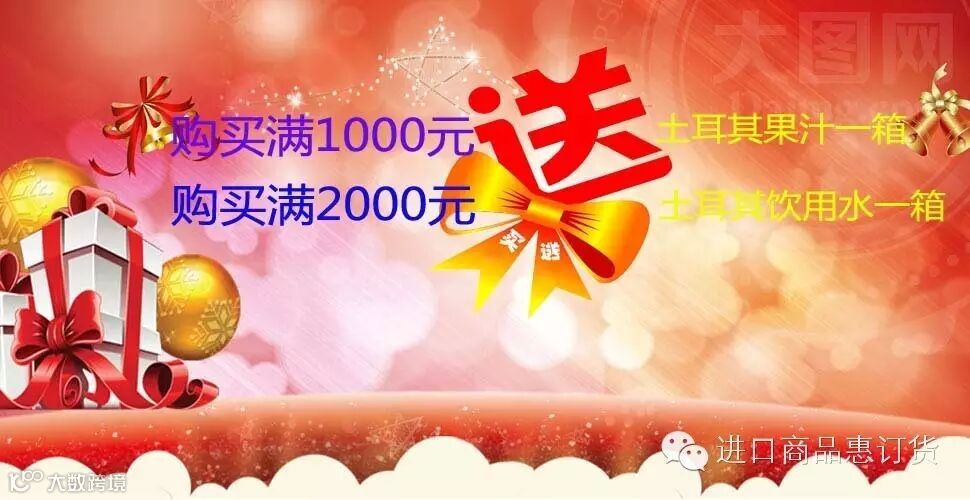 ,凡是订购满1000元者送土耳其果汁一箱,满2000元者送土耳其饮用水两箱。