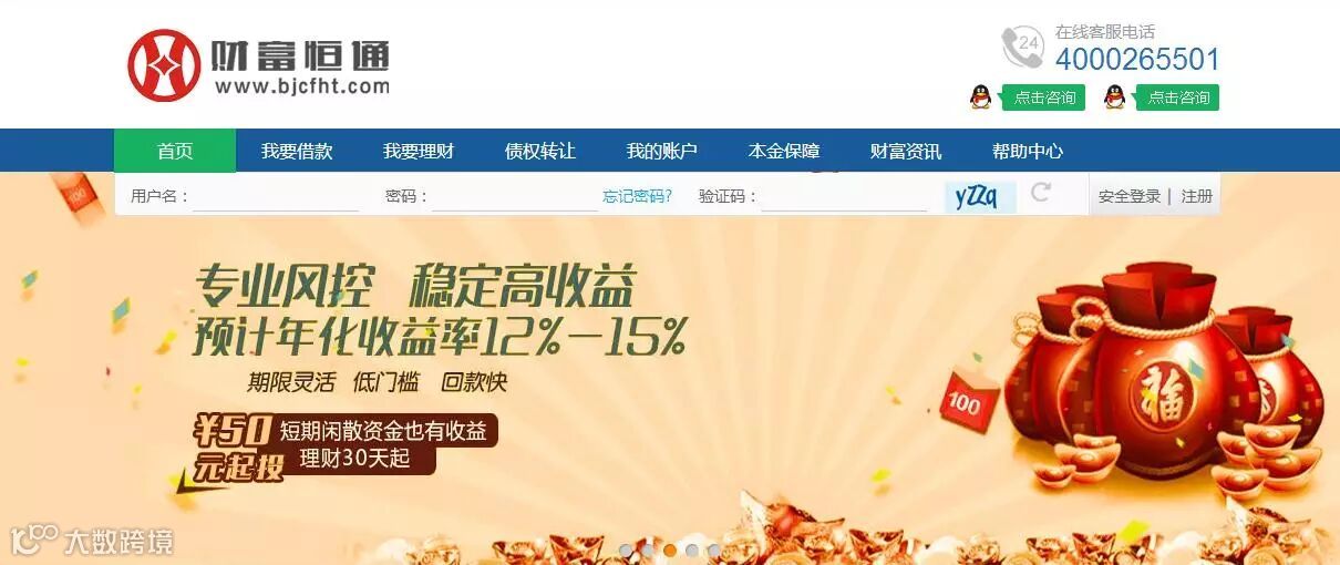 财富恒通官网首页据点筹金融高级副总裁赵学生介绍:之所以选择与财富恒通合作,点筹金融线下测评团队对财富恒通的相关经营资料进行严格审查、对该平台的经营场所、资金安全保障均进行了实地考察,同时,网贷领投风控团队对其过往交易清单、经营中高层和舆情进行监测,均无负面清单。点筹金融与财富恒通达成合作后,点筹金融将会对该平台展示的每个借款标进行再次审核,对借款用途、还款来源清楚的优标进行全网推荐,通过点筹金融线下全国43家互联网金融交易中心进行优标推荐。