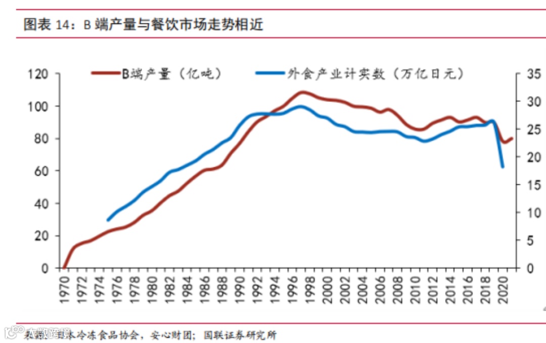 从日本预制菜B端产量与外食产业产值来看,走势基本保持一致。