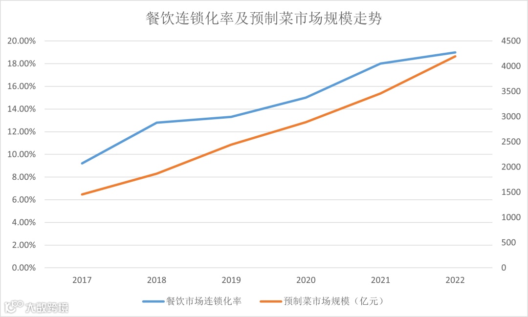 餐饮连锁化率及预制菜市场规模走势(数据来源:公开报道)