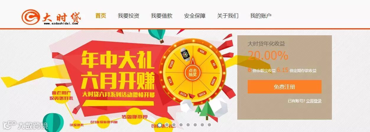 大时贷是由深圳市大时代资产管理有限公司打造的第三方互联网金融信息服务平台,注册资本5000万人民币。