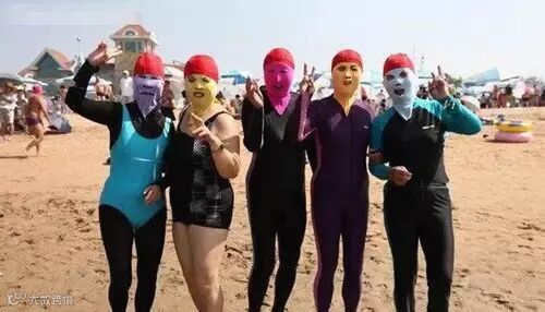 2014年,一本法国时尚杂志以防晒头套为灵感,拍摄了一组泳池时尚大片,这个由青岛大妈设计的“防晒神器”被称为Facekini,直译就是“脸基尼”,终于成功冲进世界时尚圈。一家电视台总结:这是中国大妈继抄底黄金、广场舞后对世界做的第三大贡献。