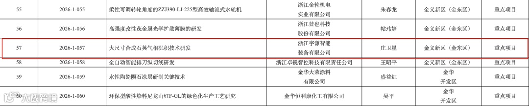 1.大尺寸合成石英气相沉积技术研发——浙江宇谦智能装备有限公司