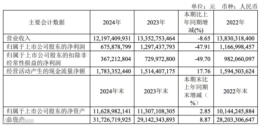 长飞光纤(601869)3月29日披露2024年年度报告。2024年,公司实现营业总收入121.97亿元,同比下降8.65%;归母净利润6.76亿元,同比下降47.91%;扣非净利润3.67亿元,同比下降49.70%;经营活动产生的现金流量净额为17.83亿元,同比增长17.76%。