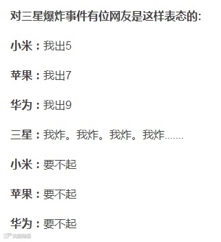 三星的最新手机Galaxy Note 7因为电池频传过热爆炸......你说这三星一言不合,就开炸了。壮观的场面简直跟定时炸弹等武器的杀伤力一样大。三星慌了,似乎情况越来越不受控制,最后终于宣布全球note7召回。