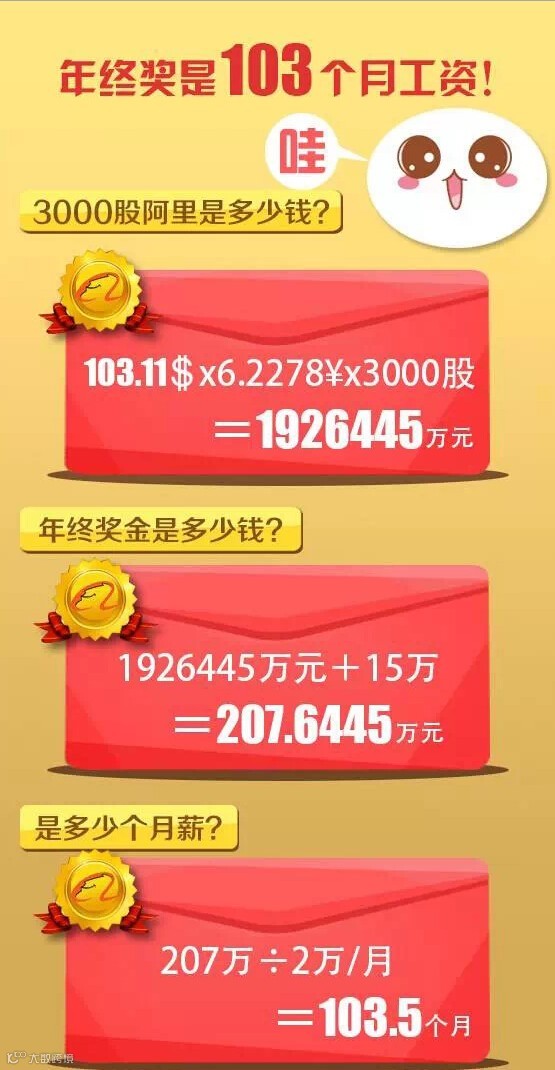 阿里的年终奖等于100个月工资,百度等于50个月!!!