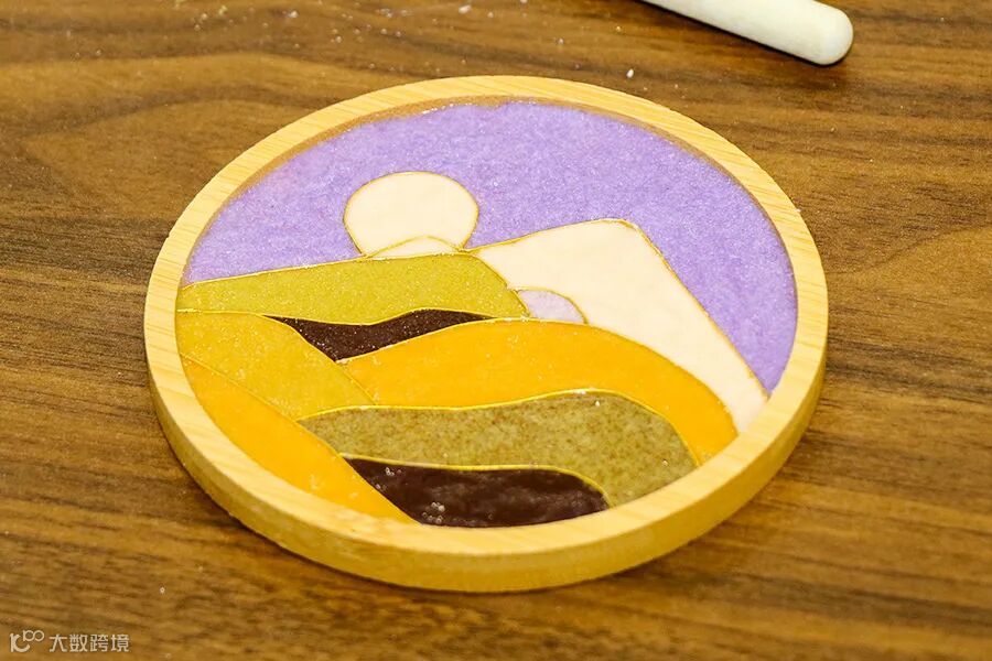 当进入“点蓝”环节,活动氛围达到高潮。大家根据自己的喜好,用调沙铲将不同颜色的沙彩小心翼翼地填充到铜丝勾勒的区域,原本单调的画板逐渐变得色彩斑斓。