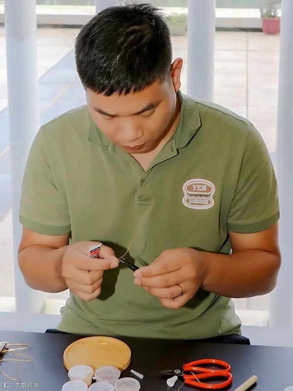 随后进入实操环节,在讲师的耐心指导下,大家用镊子将细软的铜丝在画板上按线条粘贴固定,看似简单的掐丝步骤,却考验着大家的耐心与细致。