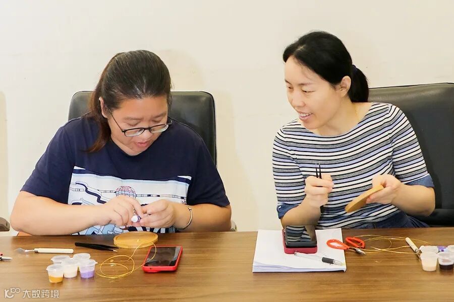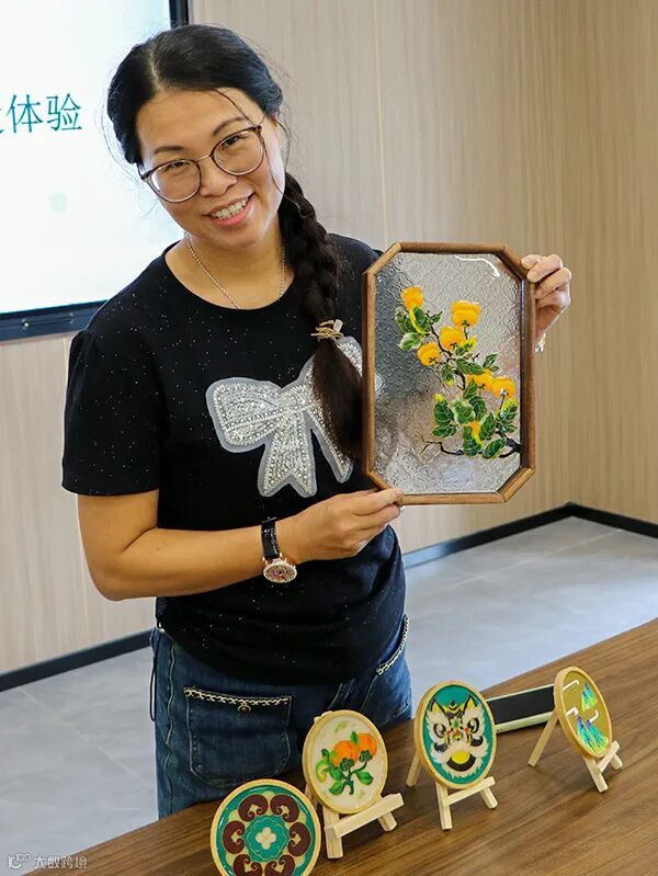 经过近两个小时的专注创作,一幅幅精美的“掐丝珐琅”作品陆续完成。看着自己亲手制作的成品,大家脸上洋溢着成就感。