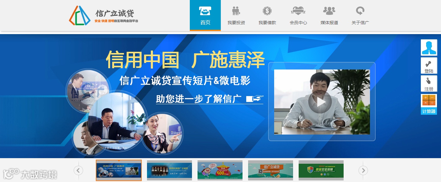 信广立诚贷网站隶属于信广普惠投资管理(北京)有限责任公司,信广惠资产管理(北京)有限公司,信广立诚贷(北京)科技有限公司,是目前中国地区最安全、最专业的网络信贷理财平台之一。信广顺应全球电子商务未来发展的趋势,充分挖掘互联网金融市场潜力,通过建立一个安全、高效、诚信、互惠互助的网络借贷平台。信广严格遵守国家相关法律法规,并敦促其会员在信息发布和使用过程中严格遵守相关法规。同时,我们也将竭尽所能,不断完善对网站平台的管理! 让我们携起手来,愿您的财富同信广一起成长!愿您的创业梦想,在盛世下飞翔!