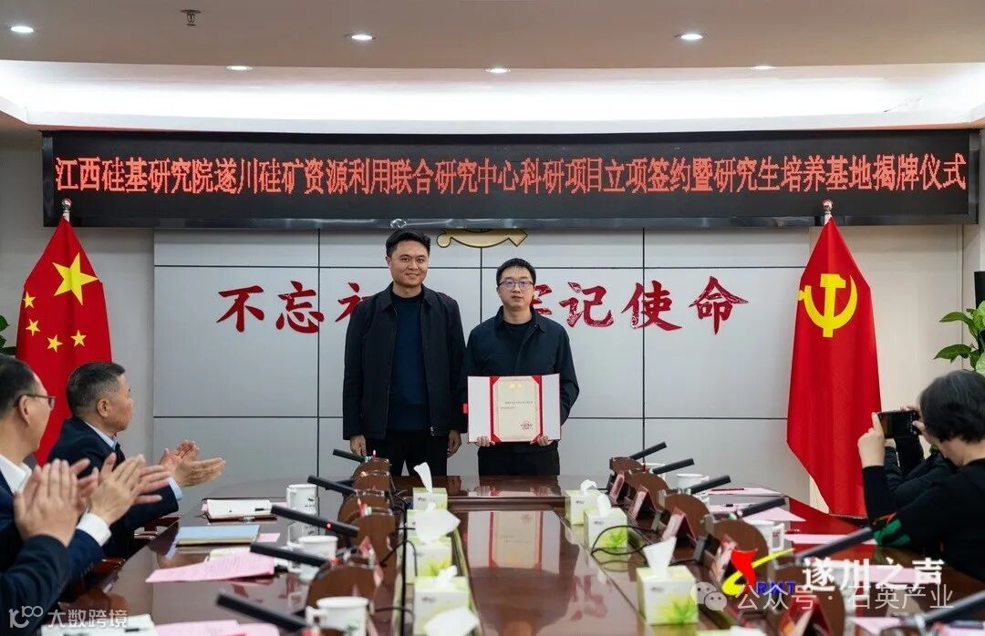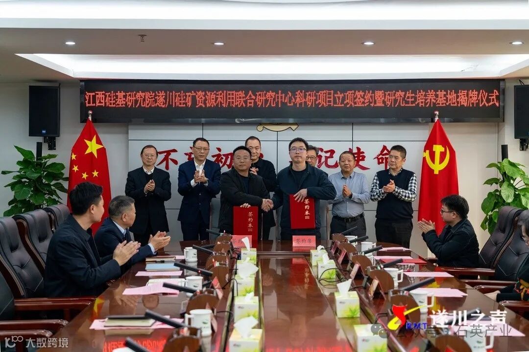 在与会领导、专家的共同见证下,江西硅基研究院遂川硅矿资源利用联合研究中心科研项目立项签约。
