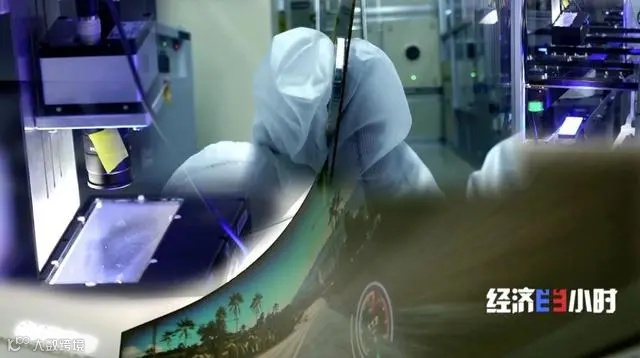 在江苏苏州,一间洁净度比很多手术室还要干净的工厂静悄悄地生产出具有8K分辨率、弯曲半径为1000毫米的曲面屏,这是一家可以生产0.38毫米厚度玻璃的面板工厂。