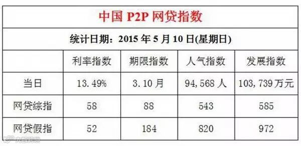 附表:2015年5月10日中国P2P网贷指数