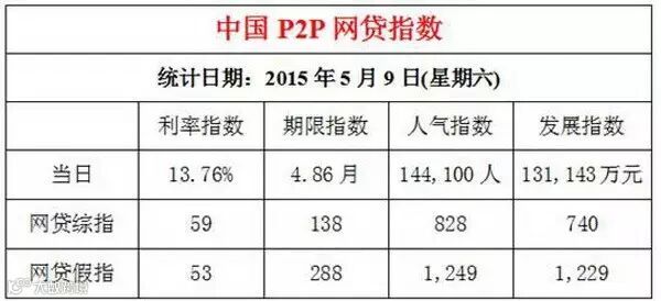 附表:2015年5月9日中国P2P网贷指数