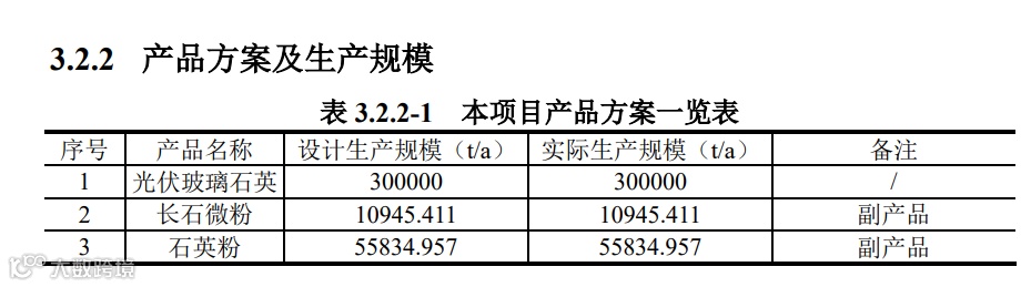 设计年产 30 万吨光伏玻璃石英(副产品:长石微粉 10945.411 吨、石英粉 55834.957吨),租赁福建省中达光电科技有限公司2栋厂房及附属设施。厂区职工定员30人,年工作300d,日工作 24h。
