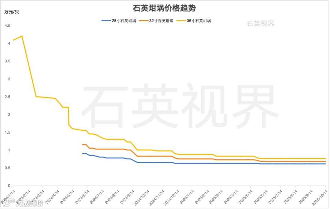 28寸石英坩埚价格在0.6-0.62万元/只,均价0.61万元/只,较上周持平;
