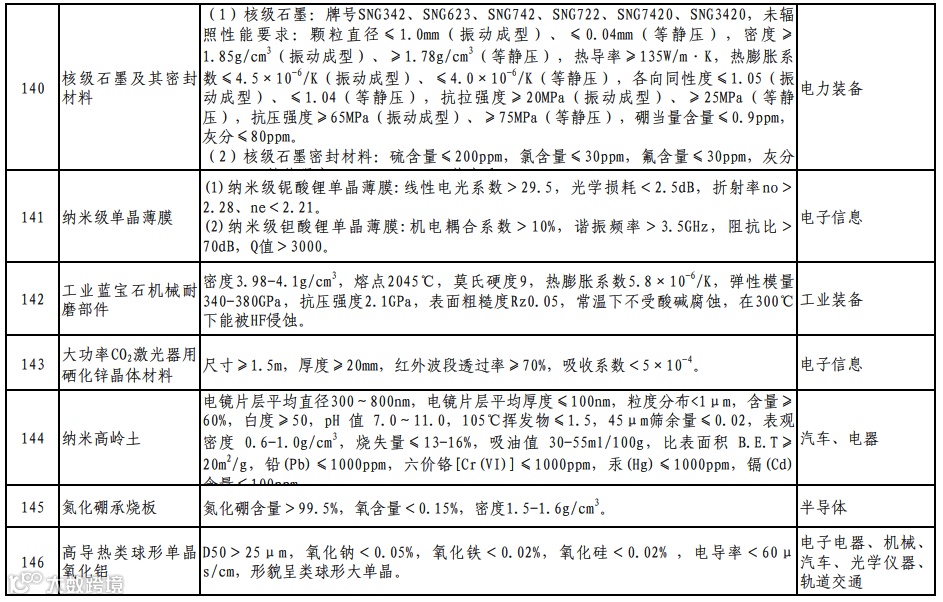 该指导目录对先进钢铁材料、先进有色金属材料、先进化工材料、先进无机非金属材料、高性能纤维及复合材料和前沿新材料的产品,性能要求和应用领域进行了说明。值得石英产业关注的是