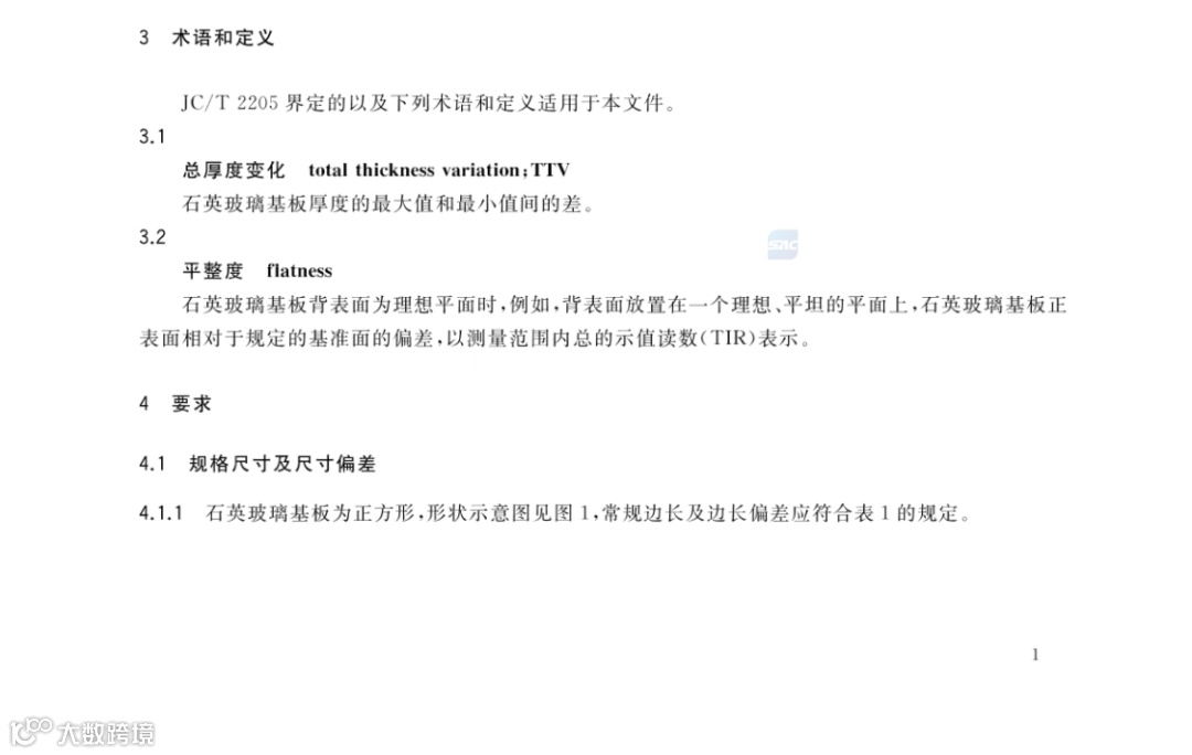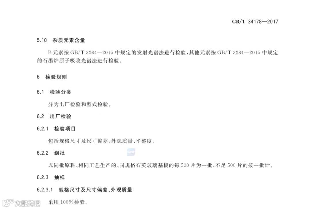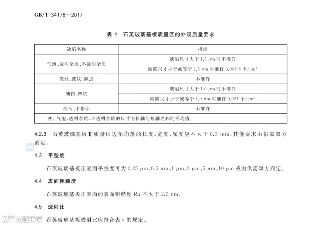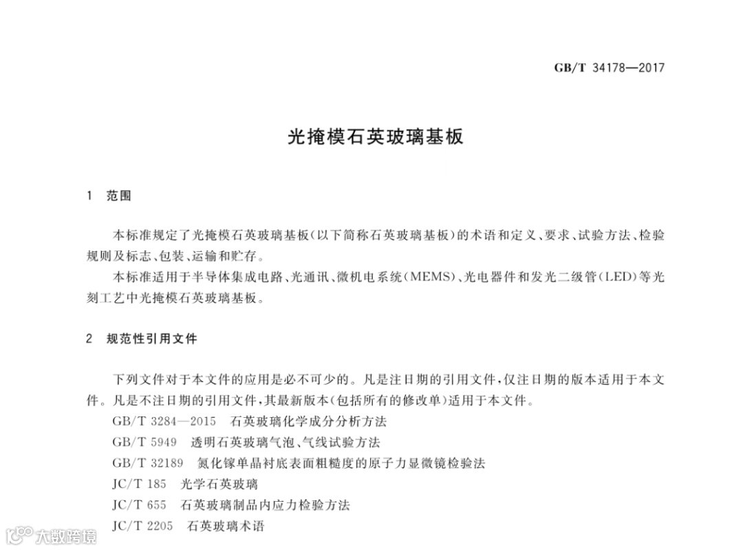 光掩模石英玻璃基板现行标准号:GB/T 34178-2017 石英产业