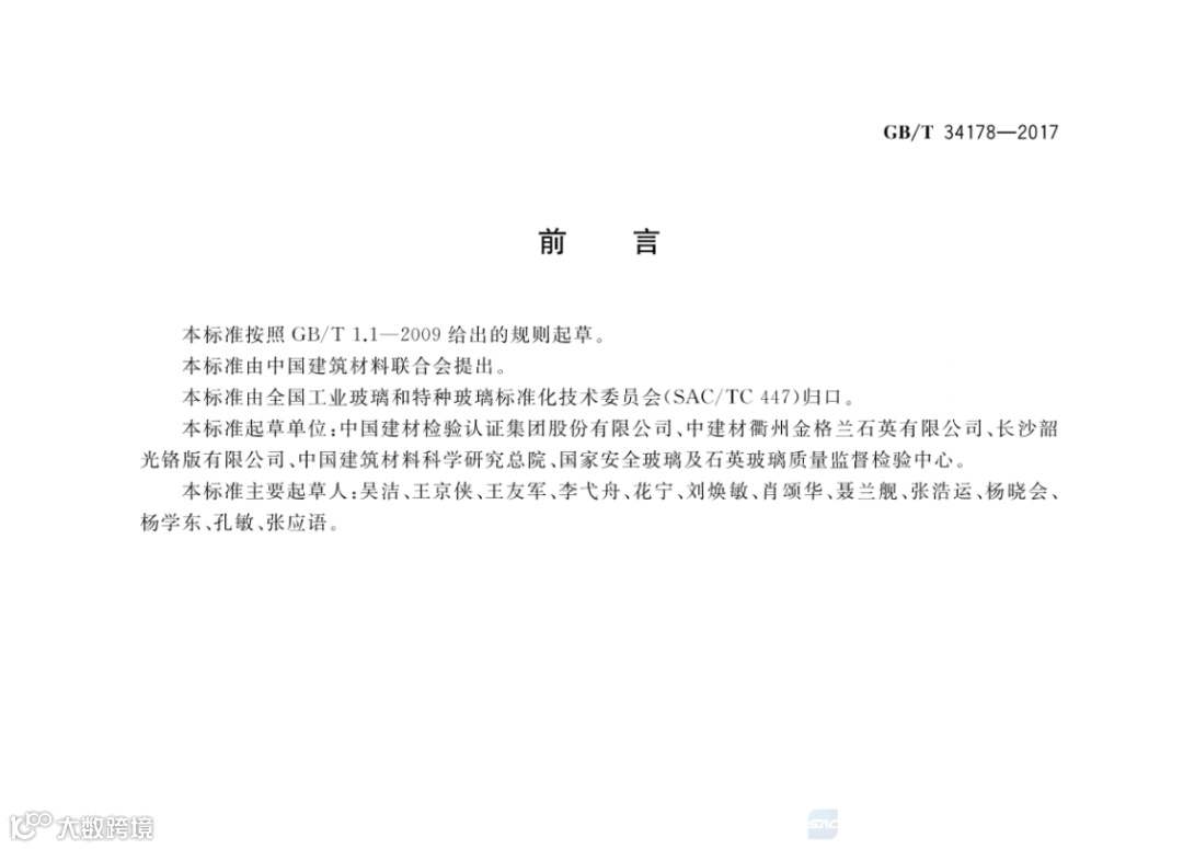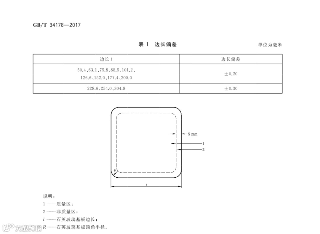 光掩模石英玻璃基板现行标准号:GB/T 34178-2017