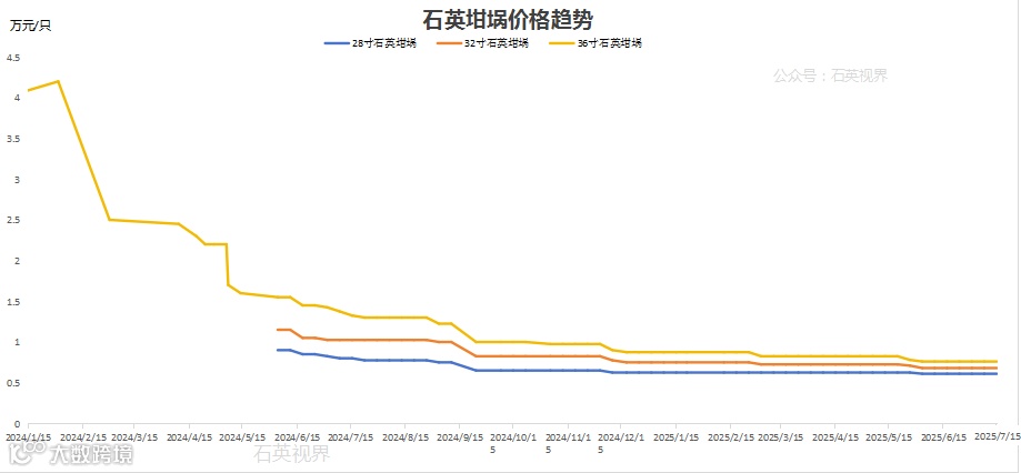 36寸石英坩埚价格在1.20-1.25万元/只,均价1.225万元/只,较上周持平。