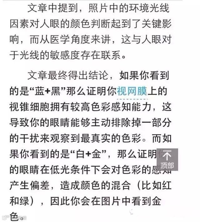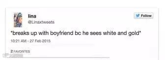 那件衣服是白色和金色的,但是我男朋友却说是蓝色和黑色的。他说我是色盲,我说他是个骗子。