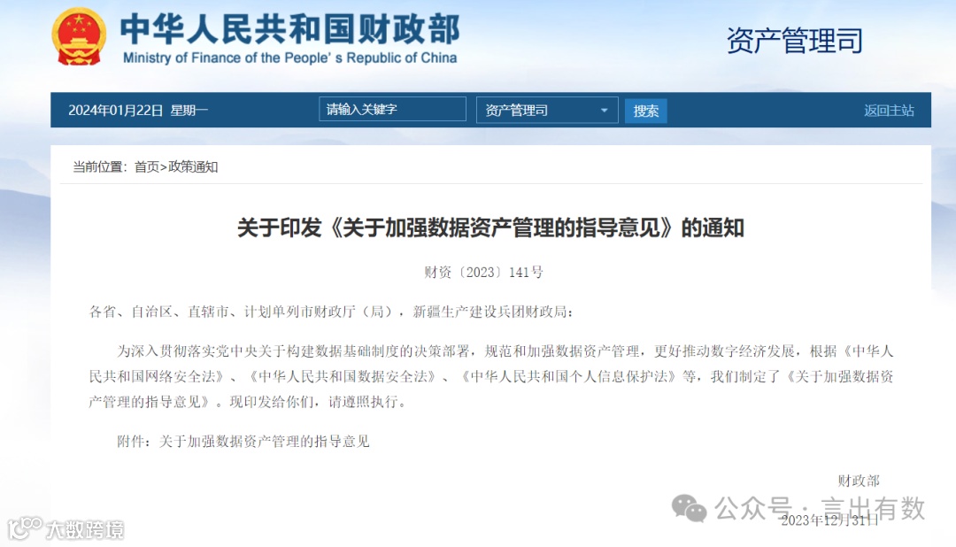 财政部印发《关于加强数据资产管理的指导意见》(下称《指导意见》),从总体要求、主要任务、实施保障等三方面十八条内容,对数据资产管理进行引导规范。