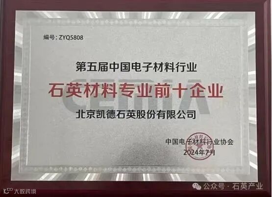 凯德长期服务于国内知名半导体设备制造企业如北方华创、光伏设备制造企业如捷佳伟创等,并长期为昆明物理研究所、中国电子科技集团公司第十一、十三研究所等科研院所提供产品。同时,凯德连续多年从事4、6英寸和8、12英寸半导体芯片生产线用石英玻璃制品的出口加工业务,产品主要销往德国、美国和中国台湾等地区,产品种类达上百种,加工技术与产品质量已达到行业较高水平。目前已获得39项专利证书(其中发明专利12项),并多次获得国家重点新产品证书、国家火炬计划证书、建筑材料科学技术奖、北京市火炬计划证书、通州区科学技术奖等荣誉。凯德石英说资本的注入很重要