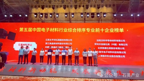 本届大会以“聚焦材料新功能,发展新质生产力”为主题,围绕电子材料行业国内外双循环构建、集成电路材料、高比能电池材料、先进电子级非金属矿粉体材料、宽禁带半导体材料等新材料产业未来发展等业内焦点,举行了第五届中国电子材料行业综合排序前50企业及相关专业前10企业授牌仪式,其中包括石英材料专业前十企业。