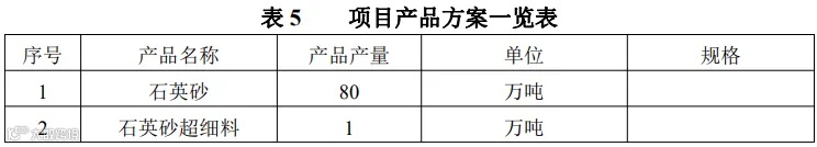 占地面积 60 亩,总建筑面积 5700m2,其中新建 2 座生产车间, 建筑面积 3700m2,新建 1 座成品库,建筑面积 2000m2。项目新增料仓、给料机、 颚式破碎机、输送带、球磨机、除杂机、滚筒筛、绞龙、脱水筛、雷蒙磨机、 空压机、旋风除尘器、污水罐、储水池、筛沙机等设备 47 台套,建成后年产 81 万吨石英砂。