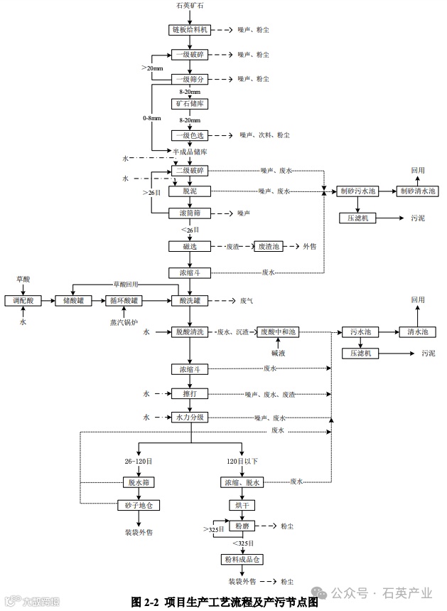 据悉,此项目为广西华宏建材有限公司年产20万吨精制石英砂生产线改造建设项目,于2024年1月环评获批。该项目总投资4098万元,环保投资152万元,建设地点为广西壮族自治区南宁市邕宁区蒲津路 113 号广西华宏建材有限公司生产厂区内。原料均来自外购,不涉及石英矿开采,不属于能源开发、利用项目。该公司现有水泥粉磨生产线在生产,原厂煤棚、旋窑原料堆棚等厂房、设施已闲置。本项目利用广西华宏建材有限公司旧场地、旧厂房、部分旧设备、旧设施,改造建设石英石堆场、破碎车间、清洗筛分车间、色选车间、酸洗车间、制砂车间以及石英粉车间等。产品方案如下:
