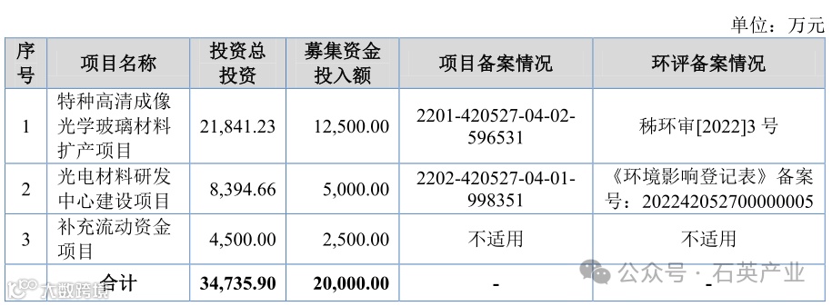 2024年3月,戈碧迦发行募集资金为2亿元,发行募投项目包括扩产的特种高清成像光学玻璃材料项目,计划新增6条产线,分两年建设,第一年建设3条,第二年投产,第二年建设3条,第三年投产。主要产品包括特种功能性玻璃中的纳米微晶玻璃,光学玻璃材料中的镧系、磷酸盐等玻璃,可应用于安防监控、投影仪、车载摄像头、AR/MR等领域。