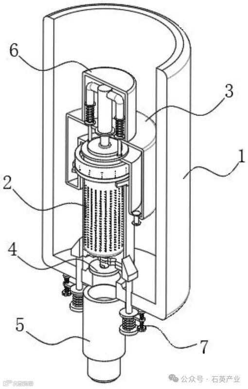 专利摘要显示,本发明公开了一种石英砂酸洗提纯装置,包括罐体,还包括过滤桶以及设置于正下方的驱动组件;驱动组件具有第一行程以及第二行程;在第一行程上,驱动组件驱动过滤桶,以实现对过滤桶的内壁进行刮除;在第二行程上,驱动组件驱动过滤桶,以实现对处于过滤桶内的杂质过滤;本发明中,通过驱动组件中第一行程与第二行程驱动过滤桶垂直于罐体底面方向的往复运动,使得过滤桶中清理组件在驱动组件的驱动下将过滤的杂质或悬浮物刮除,并对刮除的悬浮物或杂质通过清理组件向收集组件输送并对其收集,实现罐体分离的悬浮物或杂质进行清理以及收集清理的杂质,降低悬浮物与石英砂再次粘连,提高石英砂的提纯效率。