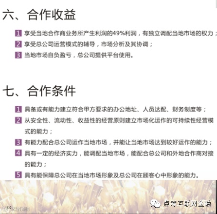 (2)、点筹金融利用遍布全国的合作伙伴,让各合作伙伴充分享受体系内的人脉和资源优势为己所用。